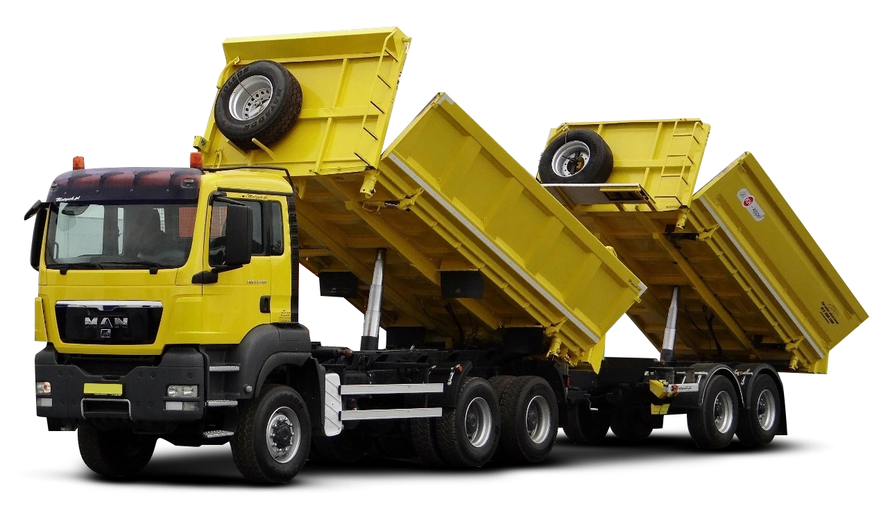 Самосвалами собственного автопарка грузоподъемностью 50-100 тонн.